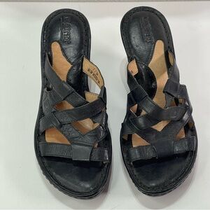 Born Leather Wedge Sandals Women 7 Black Strappy Slides Slip On Y2K Style Indie