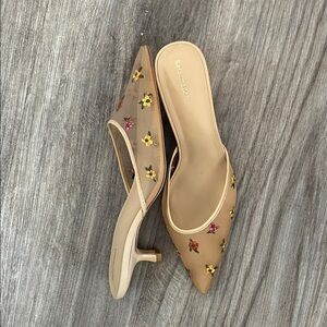 NWOB Reformation NUDE EMBROIDERED MESH MULE Size 8