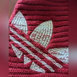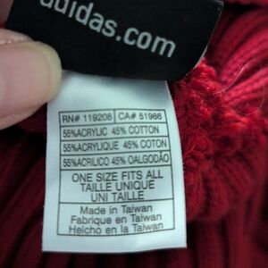 Adidas Indiana University knit Beanie hat in red with white logos.