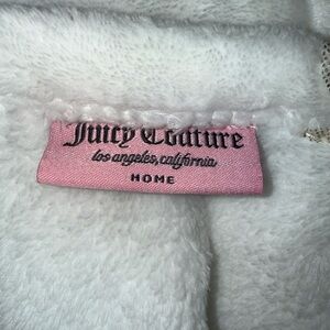 Luxurious white throw with gold logo accents. Soft and stylish. Perfect for any decor.