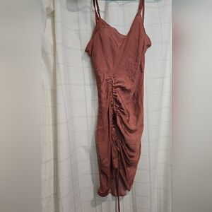 Sultry sweetness is one slip away with this little dress, featured in a mini length with thin adjustable straps and ruched tie detail, all in a semi-sheer fabrication for an intimate touch to an essential piece.