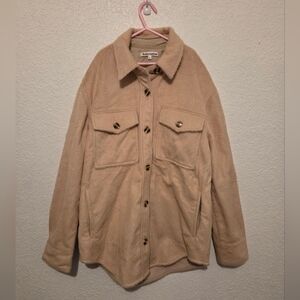 Cream/ beige shirt jacket in light faux fur material Size Small with oversized/ boxy fit. Very new, good condition