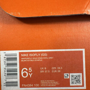 Nike iSOFLY youth basketball shoes white/mtlc gold start- cool grey size 6.5. Shoes are new but box is damaged.