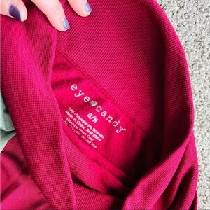 New without tags… 2 pairs of never worn leggings! Both size S/M but are very stretchy!! First paid by Eye Candy in a super cool pink color. Second is an olive color with two front zippers on the top!