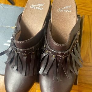 Dansko Deni Brown Mules/Clogs with Leather Fringe