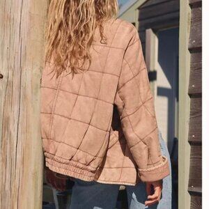 NEW BEST Free People Dolman Quilted Knit Jacket XSmall Dirty Rose Beige