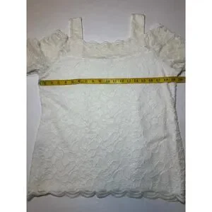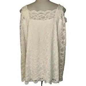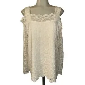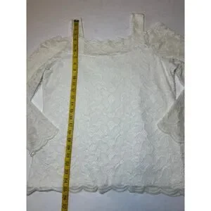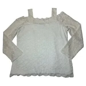 Chicos Women’s Lace Cold-Shoulder Top Size 2 US Large off White Long Sleeve Line