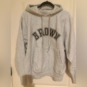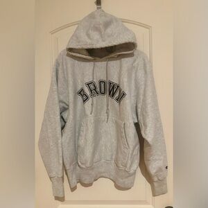 Vintage Brown Champion Classic Grey with Black lettering Kangaroo Pocket Hoodie Sweatshirt Size Large. Heavy weight. Reverse weave. Was Stored. Excellent like new condition. Smoke and pet free home. Unisex. Cross listed only 1 available