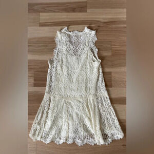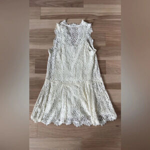 Free people Victorian Ivory Lace drop waist V-neck sleeveless mini dress Size M