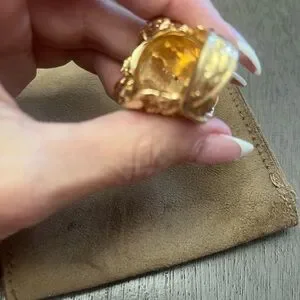 Original scrolled shank fits a size 5 1/2, 6. This ring is considered as a vintage, antique style as it was created in the 1960s and handed down in my family. You can feel the weight of the ring and weights 1 ounce of gold. The top’s measurements are 26x26mm. The band’s width is 7.37mm on the bottom. The ring sits 10.21mm from the top of the finger. You will receive ALOT of compliments on this statement ring.