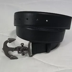 Dolce & Gabbana Mens Black Leather Nautical Anchor Buckle DG Belt. 95cm Fits Waist/Pants Size 34-38. Unworn/New/Mint Condition. Ships Immediately.