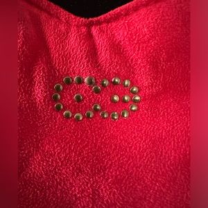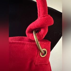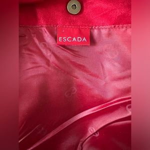 Vibrant 90s fashion red shoulder bag by Escada. Features gold-tone hardware. Elegant and stylish design.