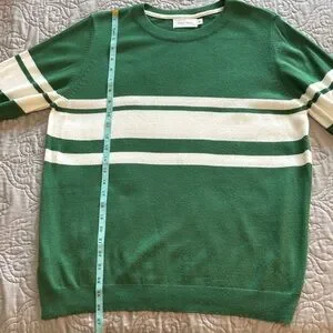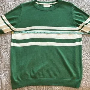 Mer Sea Court Green & White Striped Short Sleeve Crew Neck Sweater size XL