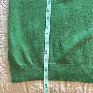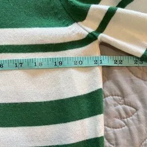 Casual green crew neck short sleeve sweater with white stripes. Banded hemline. Worn once so condition is excellent/like new.