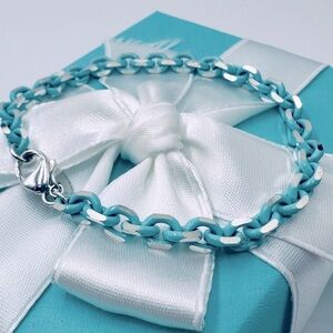 RARE Tiffany & Co. Blue Enamel Sparkle Chain Bracelet Sterling Silver with Case