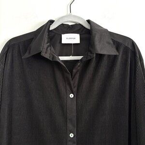 NEW Sleeper Black Origami Ribbed Long Sleeve Button Top Size Large Pajama Shirt