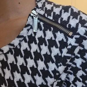 Michael Kors Peplum Black and White Houndstooth Longsleeve Women's Top
