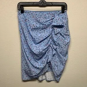 Stylish asymmetrical skirt with floral design. Features elegant draping. Ideal for versatile wear.