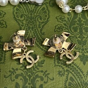 Elegant pink and gold earrings adorned with sparkling crystals. Perfect for adding a touch of glamour to any outfit.