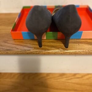 Medium to dark grey Nine West “Elise” pumps with 3 inch heels.