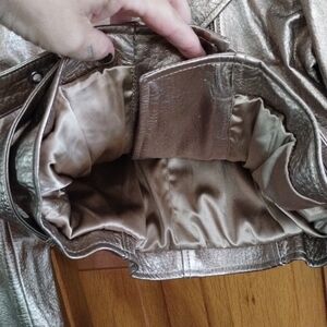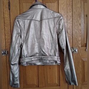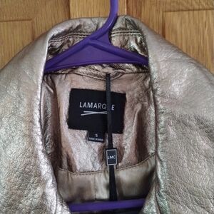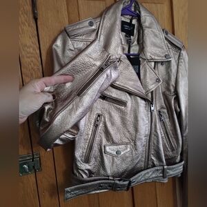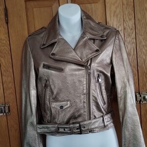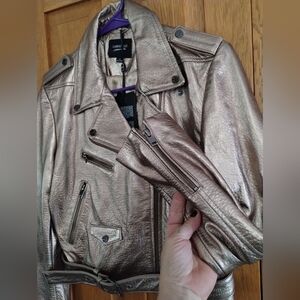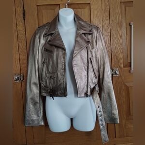 NWT Lamarque Roberto metallic gold leather belted moto jacket