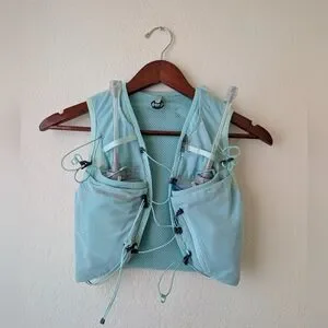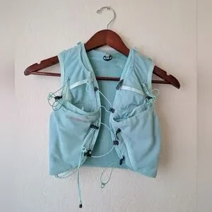 In functional used condition. Priced according to condition. There are marks here and there (see photos). The strap on one side has come undone but still works to keep the bottle tube down. One photo shows where the pocket seam is pulling into a small hole. Includes the bottles. I trimmed the tubes down because they were way too long for me. Size XXS.