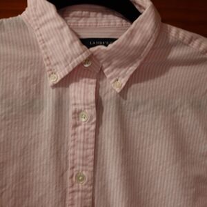 Lands' End Light Pink Striped Cotton Button-Down Shirt Long Sleeve 8