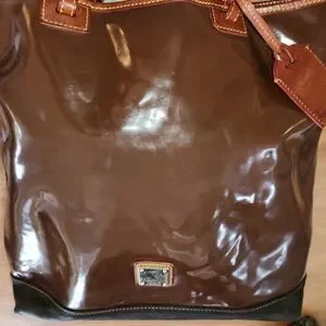 Dooney & Bourke Patent Leather Shopper Tote – Rich Espresso & CognacElevate yo