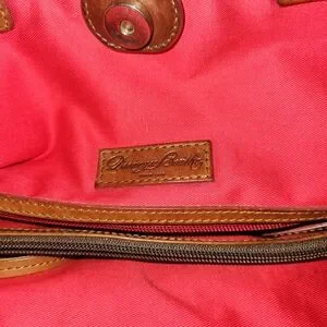 Heritage Details: Features the iconic Dooney & Bourke metal nameplate and the signature leather hangtag.
