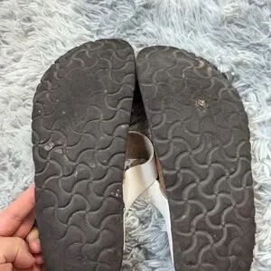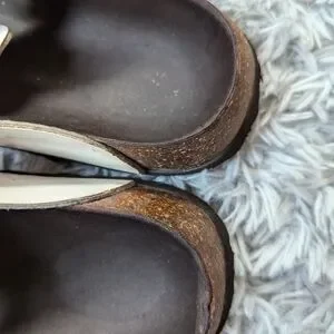 Chic white straps with a comfortable brown footbed. Ideal for casual wear.