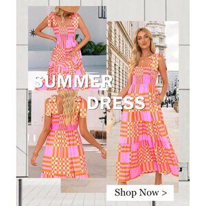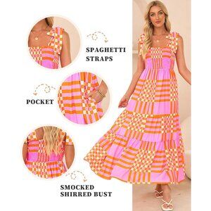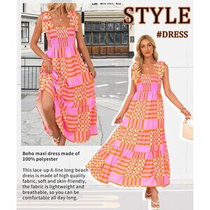 Features: This gorgeous boho maxi dress is made of lightweight, breathable 100% polyester that feels soft and skin-friendly. It features spaghetti straps, a square neckline, sleeveless style, and a flattering high elasticized waist. The ruffled hem with subtle layered detailing adds a lovely flowy touch — perfect for breezy summer days or vacation fun.