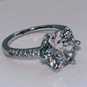 Silver Tone Round Cut Cubic Zirconia Engagement Ring