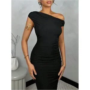 [ORIGINAL_TITLE: Women's Off Shoulder Maxi Dress Bodycon Ruched Asymmetrical Neck Casual Evening]