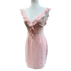 Amanda Uprichard Petal Pink Blush 100% Silk Mini Dress Small Ruffle V-Neck