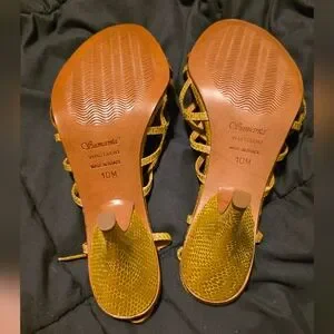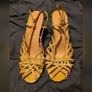 #SamantaShoes #VeroCuoio #MadeInBrazil #StrappyHeels #YellowSandals #KittenHeels #DressShoes #BoldStyle #StatementShoes #SpringFashion #SummerHeels #Size10 #LeatherLined #DesignerHeels