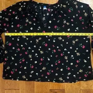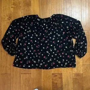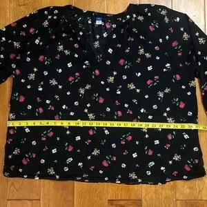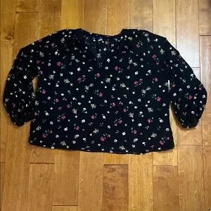 Old Navy Oversized Boxy Black Floral Blouse Size XL Casual Whimsigoth Fairy