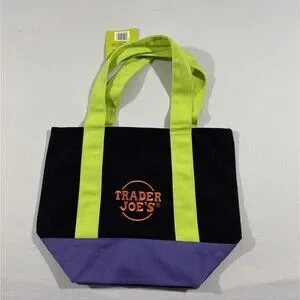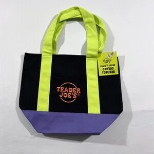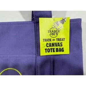 Celebrate spooky season with this set of four Trader Joes Trick or Treat mini tote bags, featuring vibrant Halloween-themed designs in orange, black, purple, and multicolor. These canvas totes are exclusive to Trader Joes and perfect for gifting, decor, or light carrying. Each measures approximately 13" x 8".