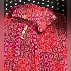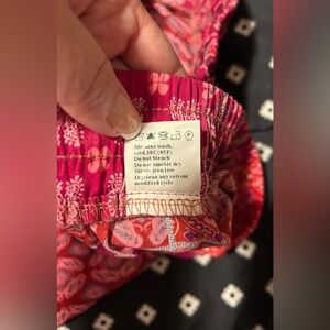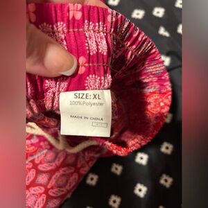 Like new! These fit a little small- see measurements-bundle and save! Vibrant bohemian patchwork wide-leg pants in pink and red. Features a drawstring waist for comfort.