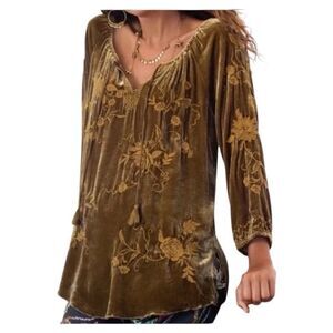 Johnny Was Womens Floral 3/4 Sleeve Millie Velvet Peasant Blouse Bronze Large