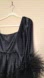 Black Silk Chiffon Feather Cuff Mini Dress Medium Square neck Smock at back Mobwife Whimsigoth Party Holiday Glam
