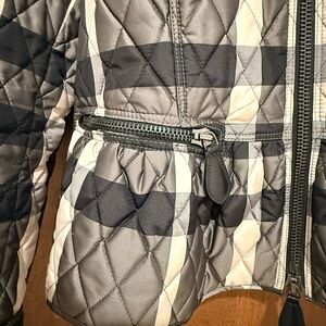 Classic Burberry Quilted Plaid Black and White Peplum Jacket, USA Size 8
