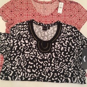 Fafaella Black/White Short Sleeve Top Size XL Petite 100% Cotton No Tag