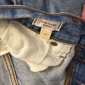 Madewell Low Slung Baggy Jeans sizes 30 & 31. Excellent used condition, only worn a few times. Rigid, heavyweight denim with slight distressing. Button fly. This style runs large. Love this cut of jeans!