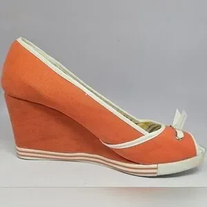 Joe Boxer Women's Orange Canvas Wedges Size 9