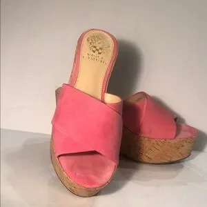 Vince Camuto Kessina Mule Soft Pink Suede Leather Cork Platform Wedge Sandal EUC Size 6 US 36.5 EU