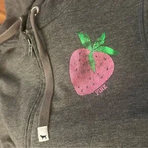 Rare! 🍓🍓Adorable Victoria’s Secret Pink Strawberry two-piece matching set loungewear sweatsuit sweatpants hoodie