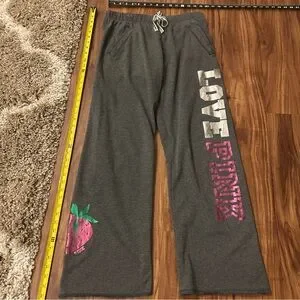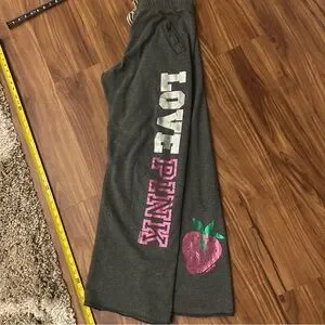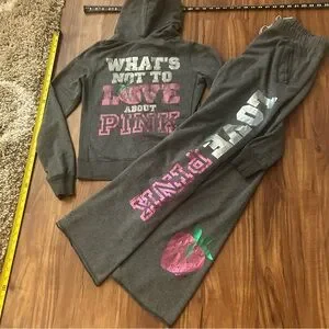 Cozy Victoria’s Secret Pink pants and matching hoodie both size small. Wide leg pants with elastic tie waist.