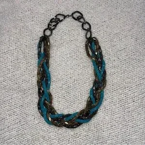 Bebe Beaded teal mix metal Braided Chain Necklace
