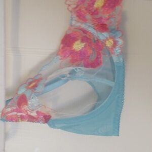 Floral Embroidery Sheer Unlined Bra Sz XL