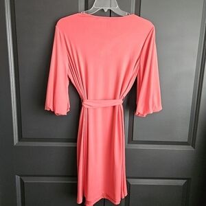 Coral sheath dress with matching belt